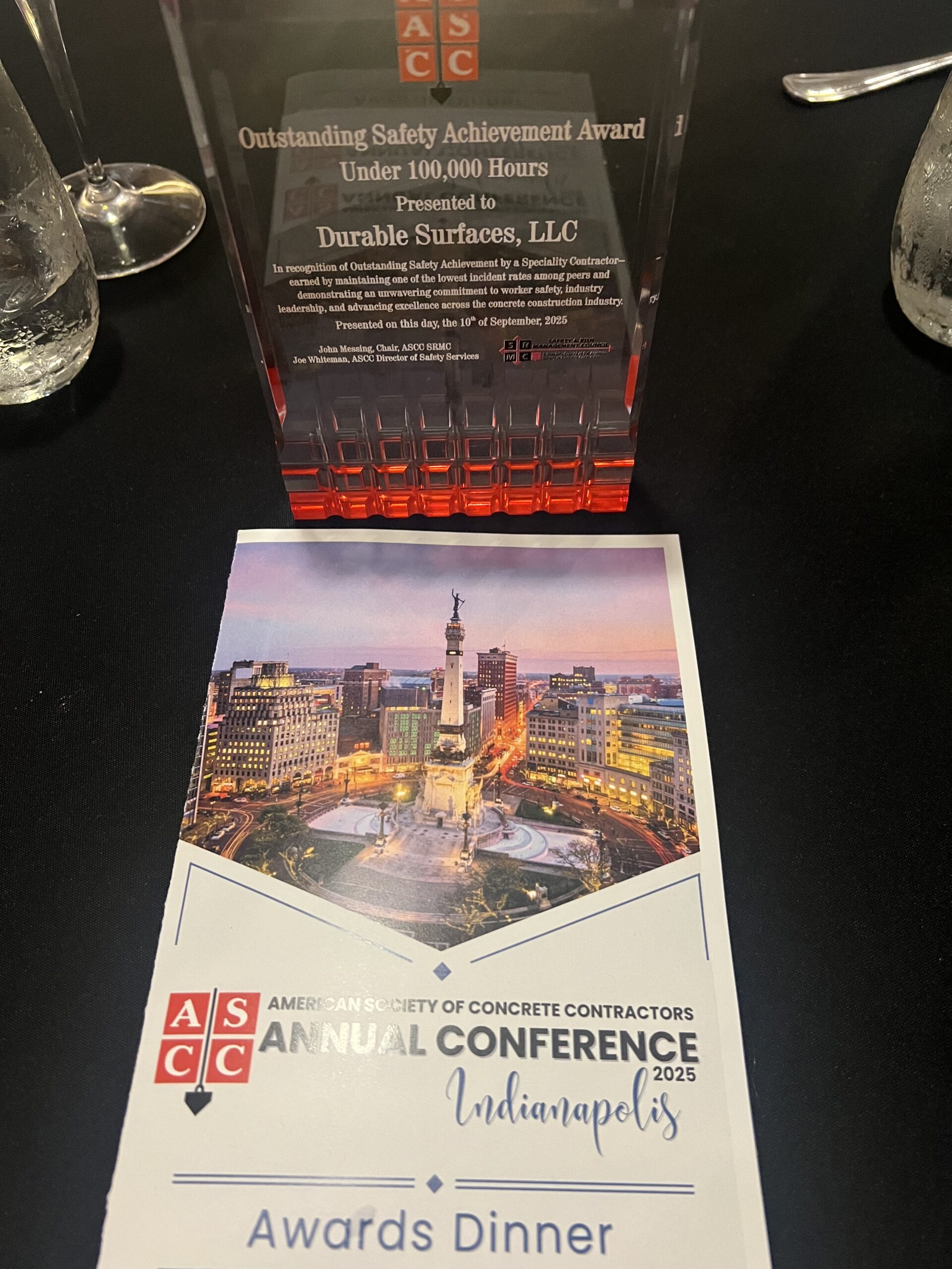 Durable Surfaces was honored with the 2025 ASCC Outstanding Safety Achievement Award in the Specialty Contractor Division.